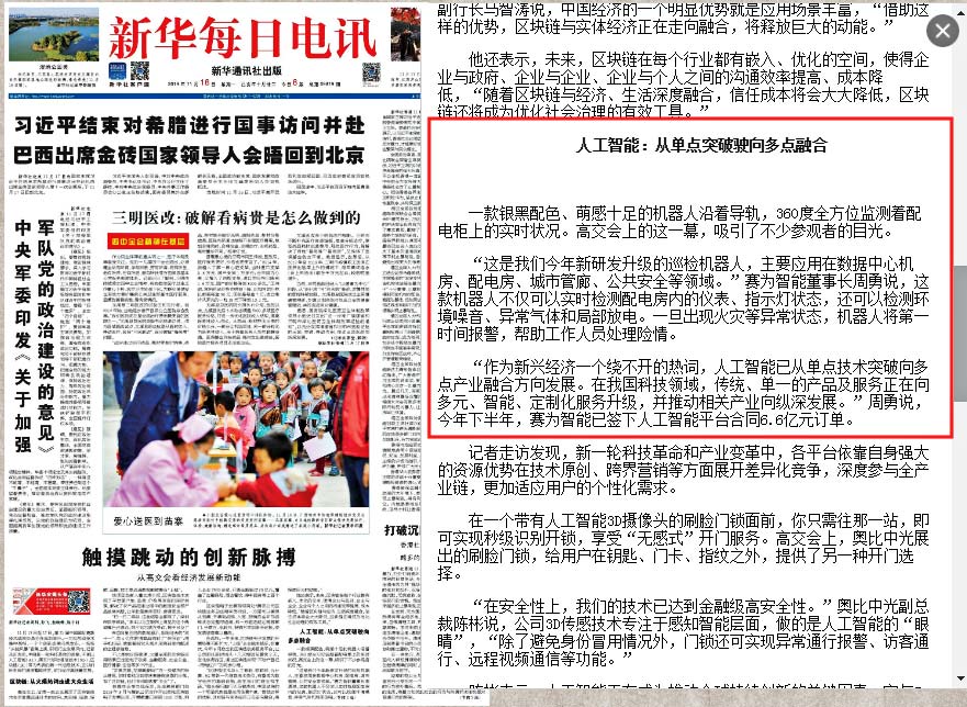 “作为新兴经济一个绕不开的热词,人工智能已从单点技术突破向多点产业融合方向发展。在我国科技领域,传统、单一的产品及服务正在向多元、智能、定制化服务升级,并推动相关产业向纵深发展。”周勇说,今年下半年,时搏官方注册智能已签下人工智能平台合同6.6亿元订单。