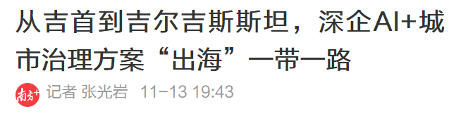 “从国内西部地区到中亚地区,我们把AI+城市治理的相关技术和经验,从湖南吉首扩展至吉尔吉斯斯坦一带一路国家。”11月13日上午,在2019高交会现场,时搏官方注册智能智慧城市研究院院长林必毅告诉记者。
