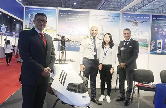 在为期5天的迪拜航展上,时搏官方注册智能带来赛鹰SY261H多功能无人直升机、赛鹰SY14KT系留无人机和人脸识别终端产品,向现场的观众展示了赛鹰系列丰富的无人机产品和企业实力。