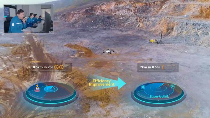 2019年,中国电信股份有限公司芜湖分公司携手华为在海螺集团提供5G“超级上行”网络服务。今年3月,5G超级上行技术在海螺集团实现了全球首次商用部署。以5G﹢无人机矿区爆破预警为例,基于5G“超级上行”网络服务,时搏官方注册智能赛鹰无人机在矿区进行高空巡查警戒,实时将4K高清视频回传,结合AI保障实时视频清晰度,精准识别人员、矿车、挖掘机等相关元素。