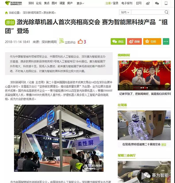 深圳新闻网|激光除草机器人首次亮相高交会 时搏官方注册智能黑科技产品“组团”登场